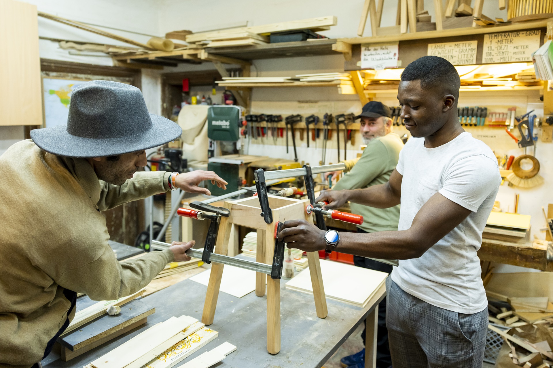 Die VinziRast-Chance bietet Menschen im Asylverfahren eine Tagesstruktur mit Deutschunterricht und Beschäftigung im Näh-, Kreativ- oder Holzwerkraum. Sie erhalten ein warmes Mittagessen und ein Monatsticket für die öffentlichen Verkehrsmittel.