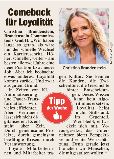 „Wir haben lange so getan, als wäre nur der schnelle Wechsel ein Karriereschritt. Höher, schneller, weiter – am besten alle zwei Jahre eine neue Position bzw. neuer Job. Aber ich beobachte etwas anderes: Loyalität kommt zurück. Und zwar aus gutem Grund.