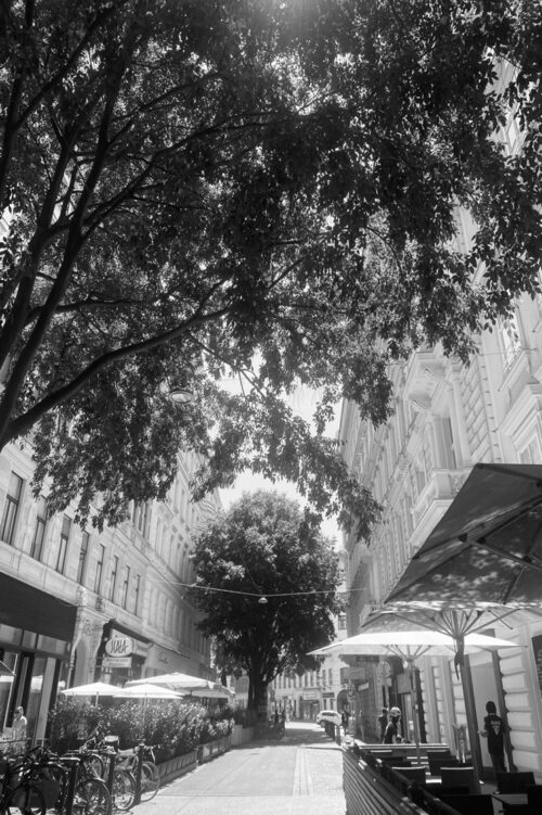 Vor dem Altbaugebäude in der Servitengasse, in dem sich die PR-Agentur befindet, beobachtete ich täglich das morgendliche Getümmel: Während die einen zügig mit einem Coffee-To-Go oder einem frischen Weckerl von Joseph Brot frühstücken, gehen es andere etwas langsamer an und genießen ihren Kaffee und ein Croissant sitzend im Café La Mercerie.